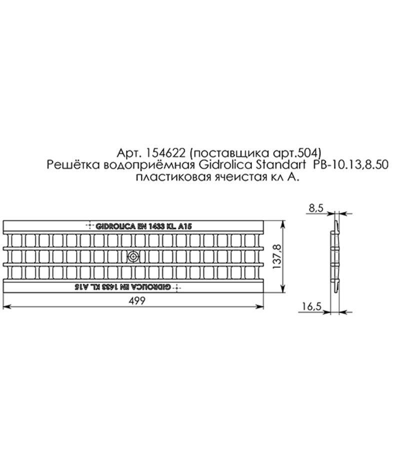 Решетка водоприемная Gidrolica (504) 500х136 мм пластиковая
