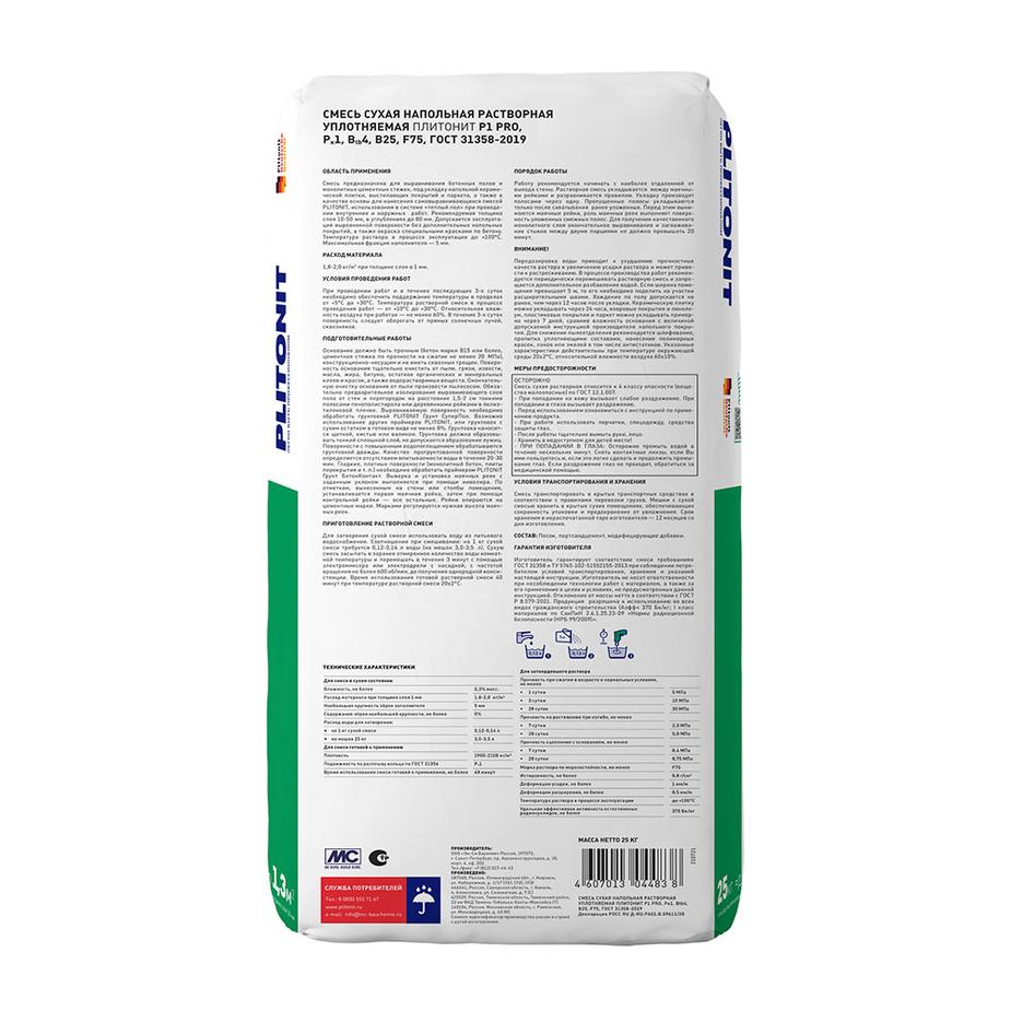 Ровнитель (стяжка пола) первичный Plitonit P1 PRO 25 кг