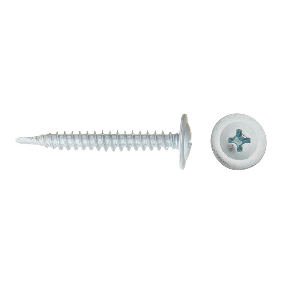 Предназначены для крепления различных металлических элементов толщиной до 2 мм между собой и к несущей поверхности без предварительного сверления. Саморезы имеют полусферическую головку с прессшайбой и крестообразным шлицем PH2, резьбу с мелким шагом и наконечник в виде бура. Производятся из оцинкованной стали. Саморезы имеют полную резьбу.