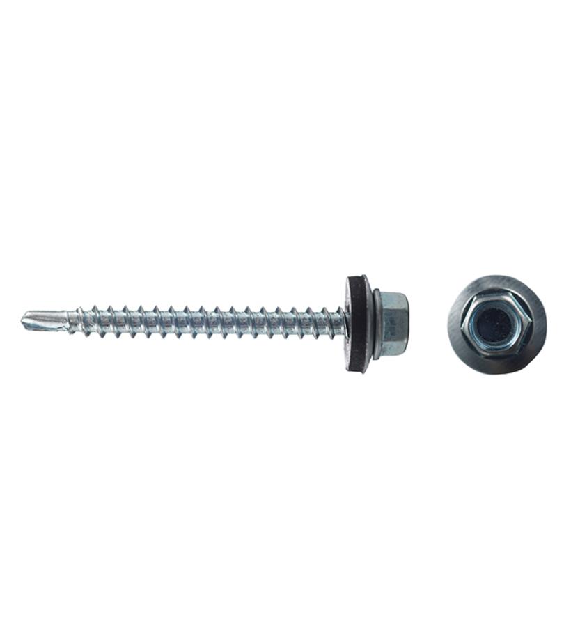 Предназначены для сквозного монтажа кровельных и облицовочных материалов (металлочерепица, профнастил, шифер оцинкованный) только к деревянным основаниям., без предварительного сверления прикрепляемого материала толщиной до 2,5 мм. Саморезы имеют шестигранную головку под ключ 8 мм и шайбу с резиновой уплотняющей прокладкой для герметизации соединения. Производятся из оцинкованной стали. Саморезы имеют полную резьбу.