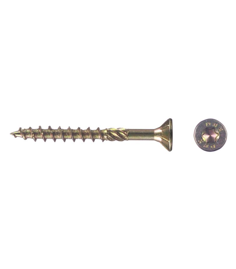 Предназначены для монтажа деревянных конструкций из цельной и срощенной древесины между собой, а так же металлических конструкций (например: уголки крепежные, пластины, металлический профиль) к основанию из цельной или срощенной древесины. Шурупы имеют потайную головку, шлиц в форме шестигранной звезды TORX Т20, неполную крупную резьбу, острый с ребрами наконечник, который предотвращает раскалывание древесины. Не требуют предварительного засверливания. Изготовлены из стали, имеют желтопассивированное защитное покрытие.