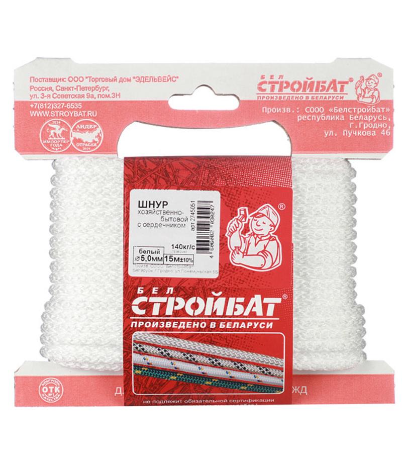 Шнур вязаный полипропиленовый 8 прядей белый d5 мм 15 м