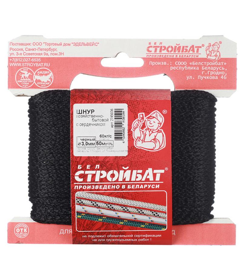 Шнур вязаный полипропиленовый 8 прядей черный d3 мм 50 м