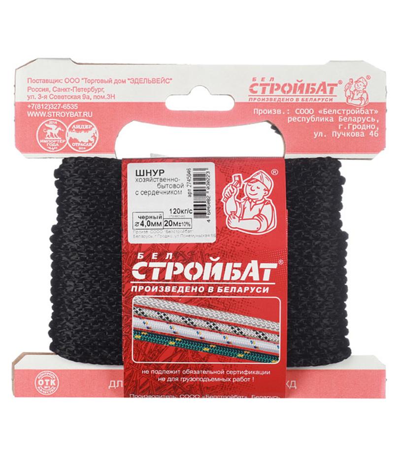 Шнур вязаный полипропиленовый 8 прядей черный d4 мм 20 м