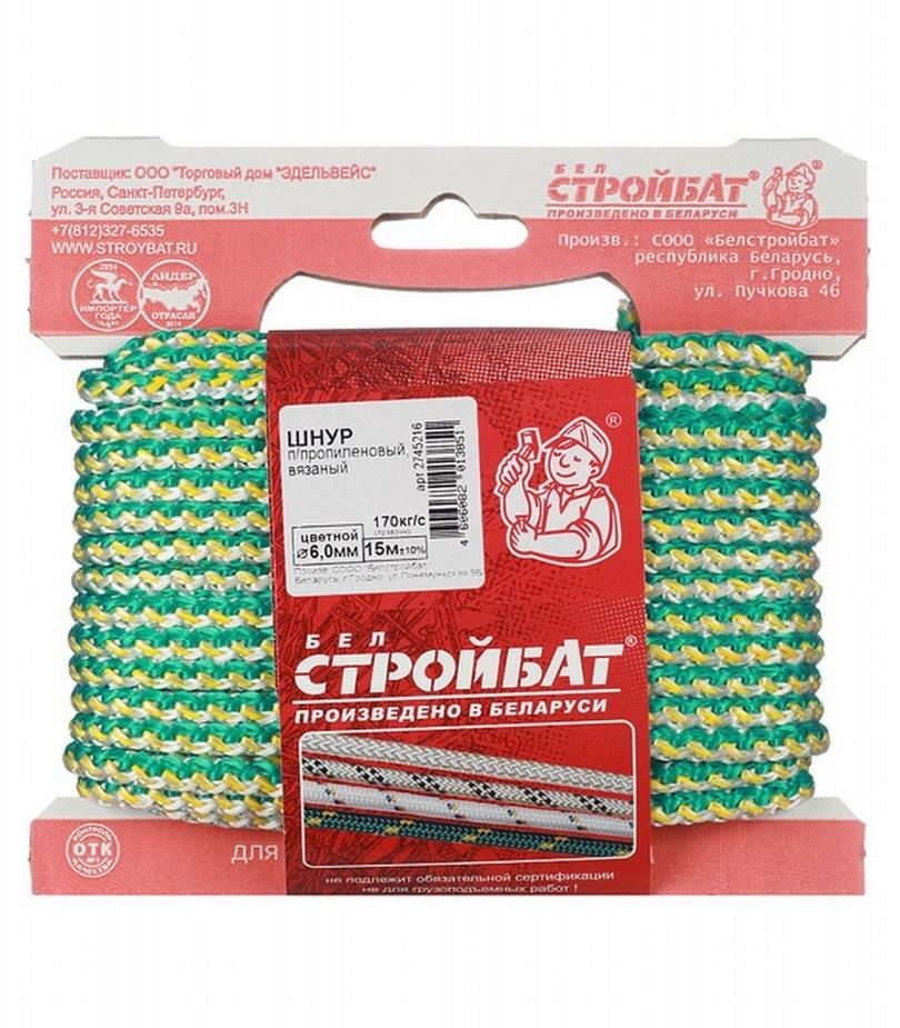 Шнур вязаный полипропиленовый 8 прядей d6 мм 15 м