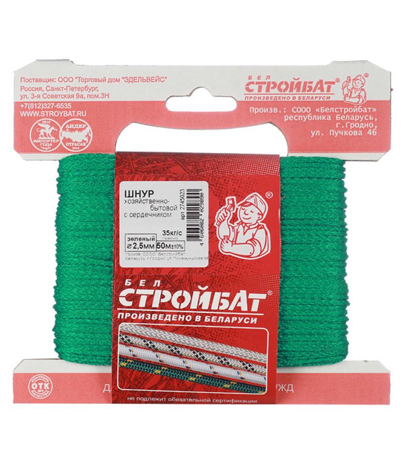 Шнур вязаный полипропиленовый 8 прядей зеленый d2,5 мм 50 м