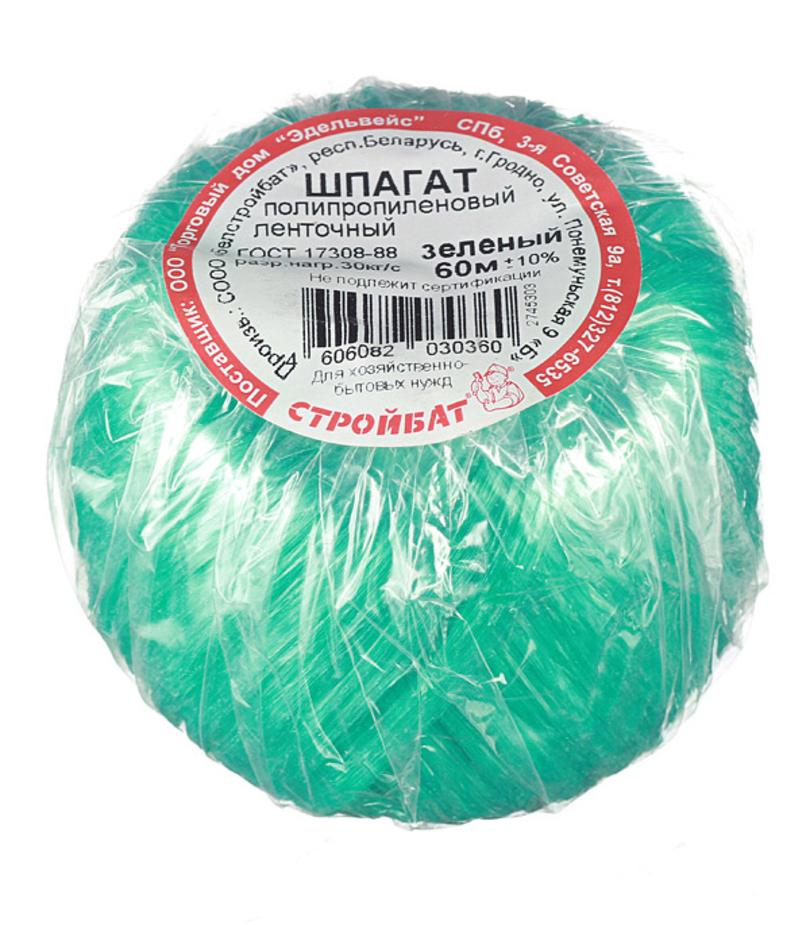 Предназначен для использования в хозяйственно-бытовых нуждах и в сельском хозяйстве. Широко применяется для изготовления изделий народного промысла, декоративной отделке, производстве мебели, текстильной промышленности, упаковке подарков, рыболовстве и т.п. В основе шпагата фибрилированная нить. Отсутствие сердечника обеспечивают минимальное относительное удлинение под нагрузкой. Рельефная фактура шпагата делает его более удобным для формирования узлов. Устойчивость к гниению. Не впитывает влагу. Не тонет в воде.
