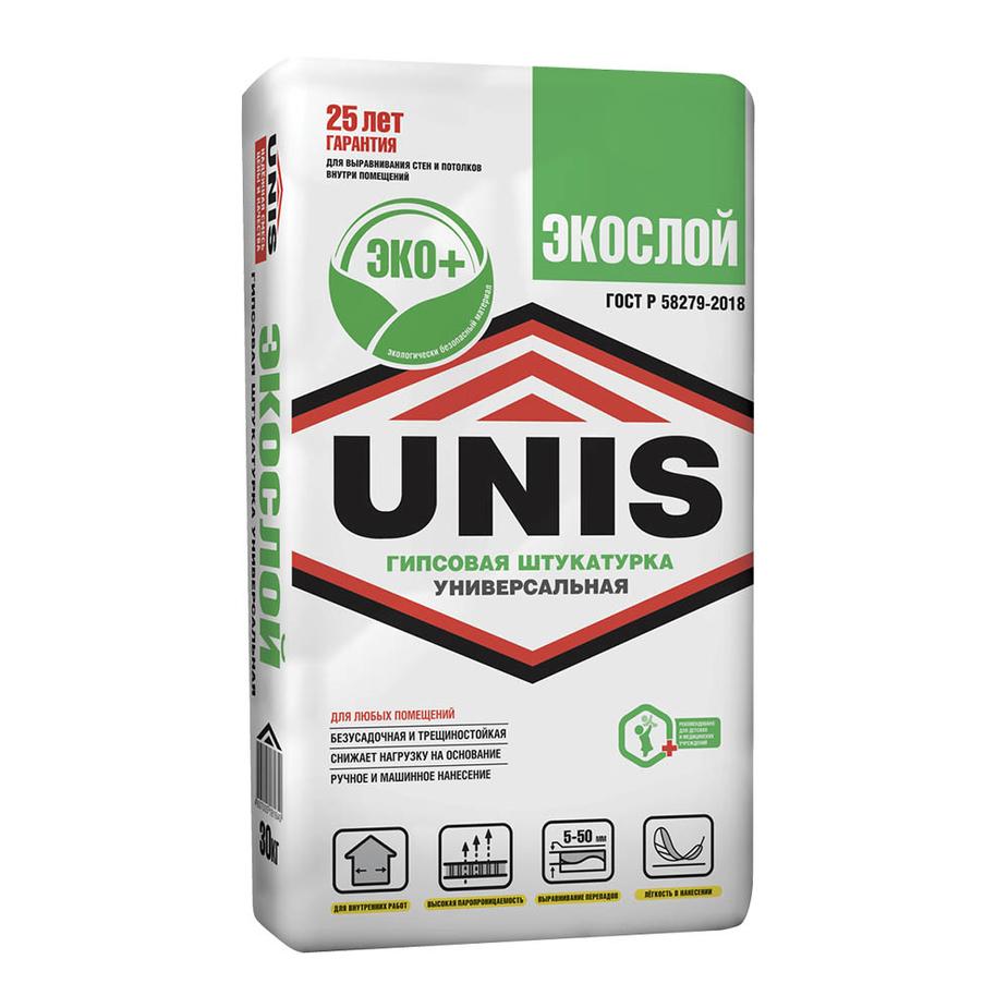 Штукатурка гипсовая Unis Экослой универсальная белая 30 кг