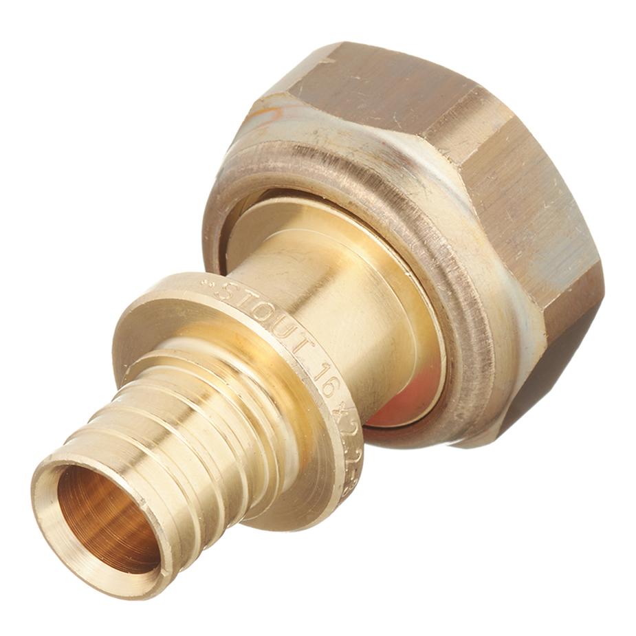 Соединитель прямой Stout (SFA-0019-001634) 16 мм х 3/4 ВР(г) с накидной гайкой латунный