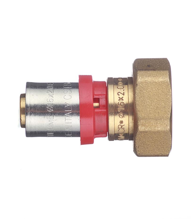 Соединитель прямой Tiemme с накидной гайкой и плоской прокладкой 16(пресс) х 3/4 ВР(г)