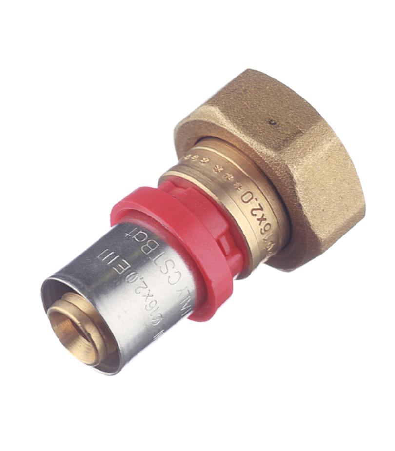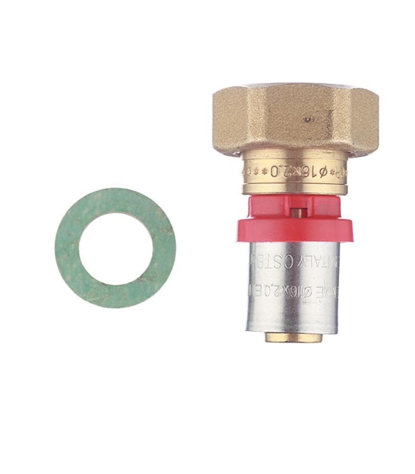 Предназначен для соединения металлопластиковой трубы диаметром 16 мм и коллектора с выходами 3/4″ с наружной резьбой, имеющими плоский торец. Состав латунь, пресс-гильза из нержавеющей стали, прокладка – паронит. Расшифровка маркировки г – гайка (внутренняя резьба). Производитель Италия.