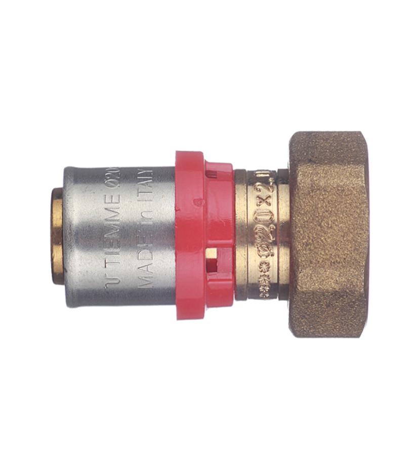 Соединитель прямой Tiemme с накидной гайкой и плоской прокладкой 20(пресс) х 3/4 ВР(г)