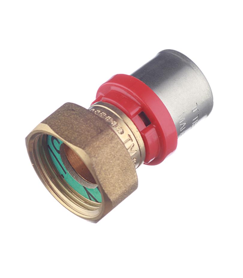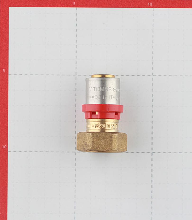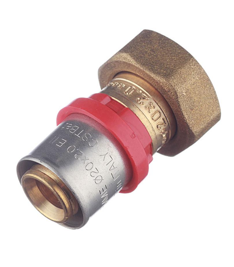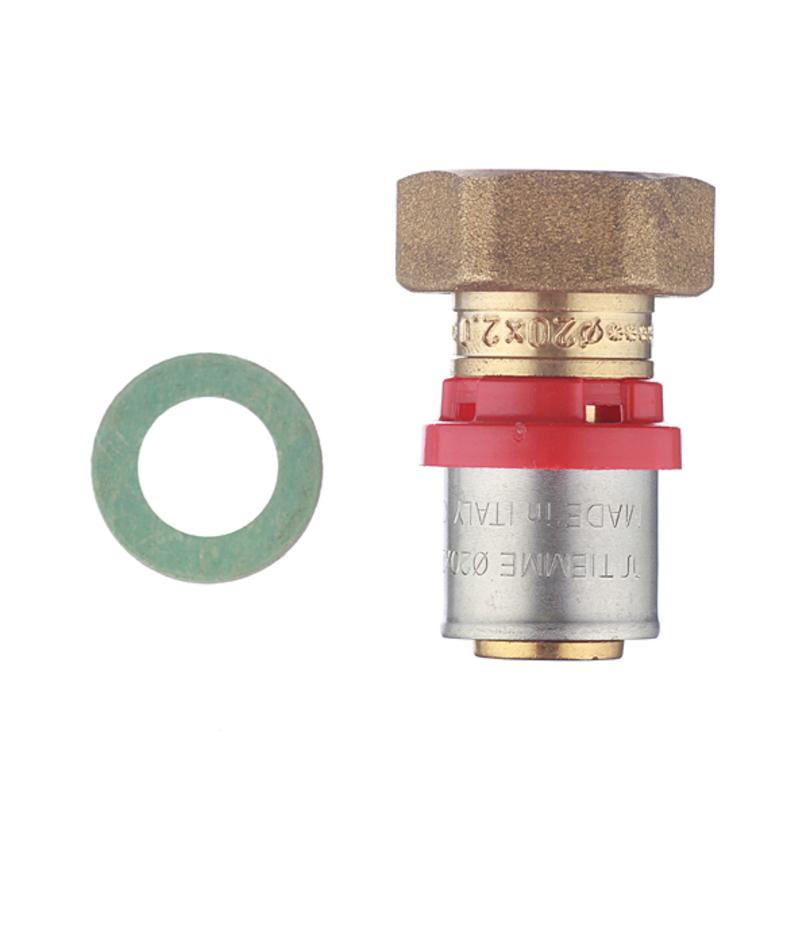 Предназначен для соединения металлопластиковой трубы диаметром 20 мм и коллектора с выходами 3/4″ с наружной резьбой, имеющими плоский торец. Состав латунь, пресс-гильза из нержавеющей стали, прокладка – паронит. Расшифровка маркировки г – гайка (внутренняя резьба). Производитель Италия.