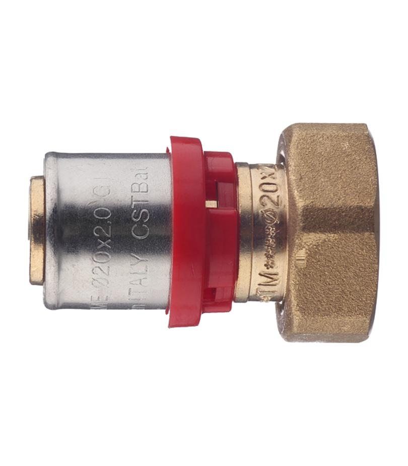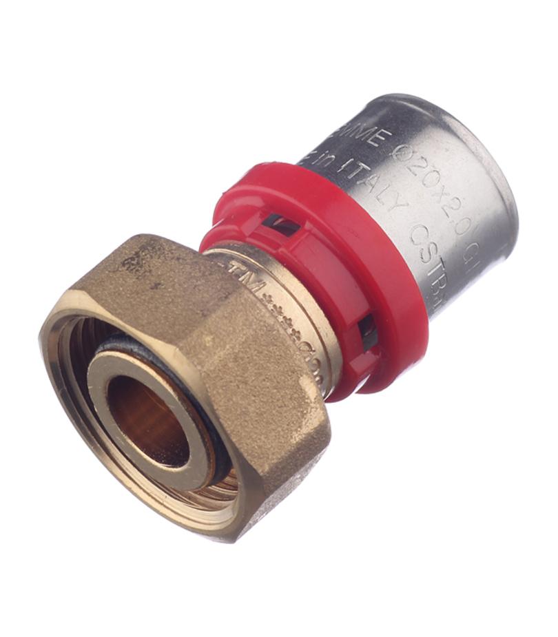 Предназначен для соединения металлопластиковой трубы диаметром 20 мм и коллектора с выходами 3/4″ с наружной резьбой под евроконус. Состав латунь, пресс-гильза из нержавеющей стали. Расшифровка маркировки г – гайка (внутренняя резьба). Производитель Италия.