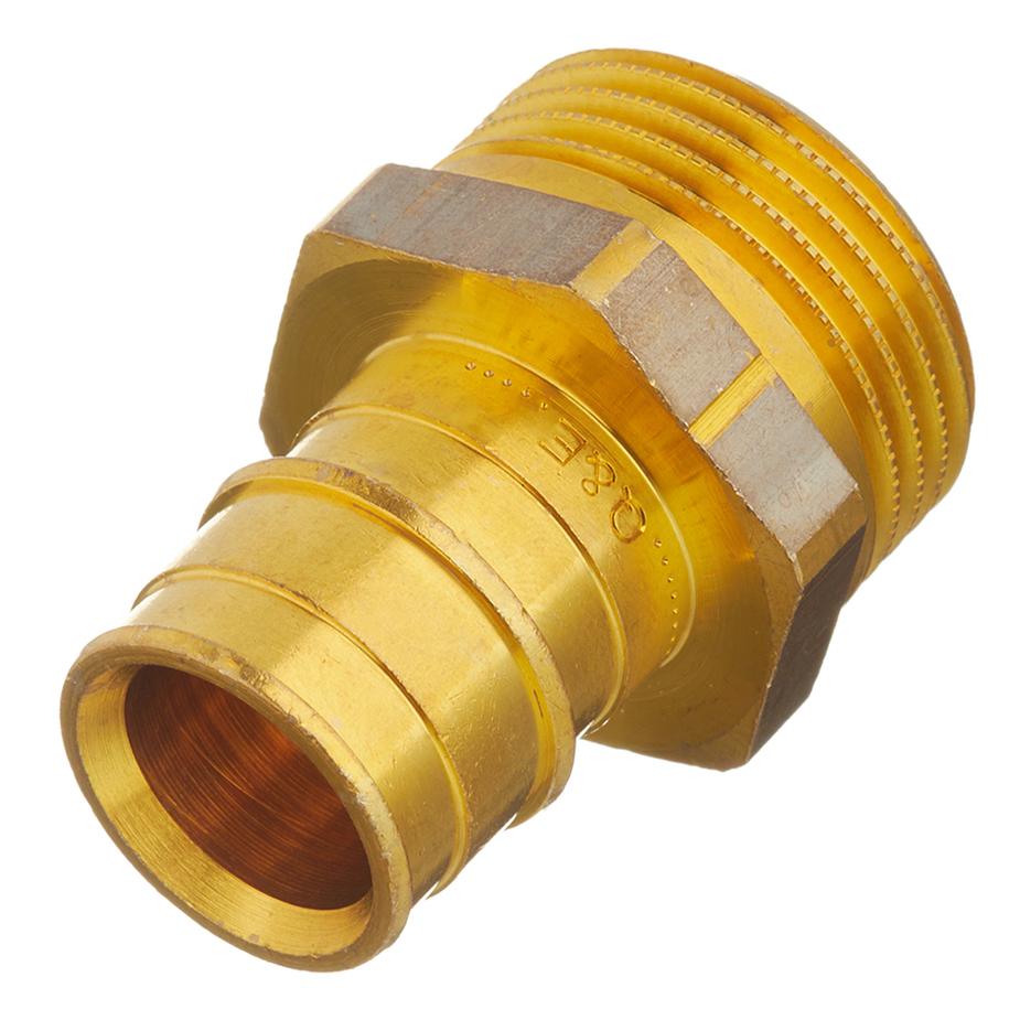 Предназначен для подсоединения труб Uponor PEX диаметром 25 мм к приборам отопления и водоснабжения, а также используются для переходов этих труб на трубопроводы из других материалов, такие как: сталь, медь, полипропилен, металлопластик с помощью резьбового соединения с наружной резьбой 1″. Изготавливается из стойкой к обесцинкованию DR-латуни. Наружная резьба трубная цилиндрическая Rp по DIN EN 10226-1, ГОСТ 6211. Uponor PE-Xa Q&E Штуцер с наружной резьбой, (латунь).