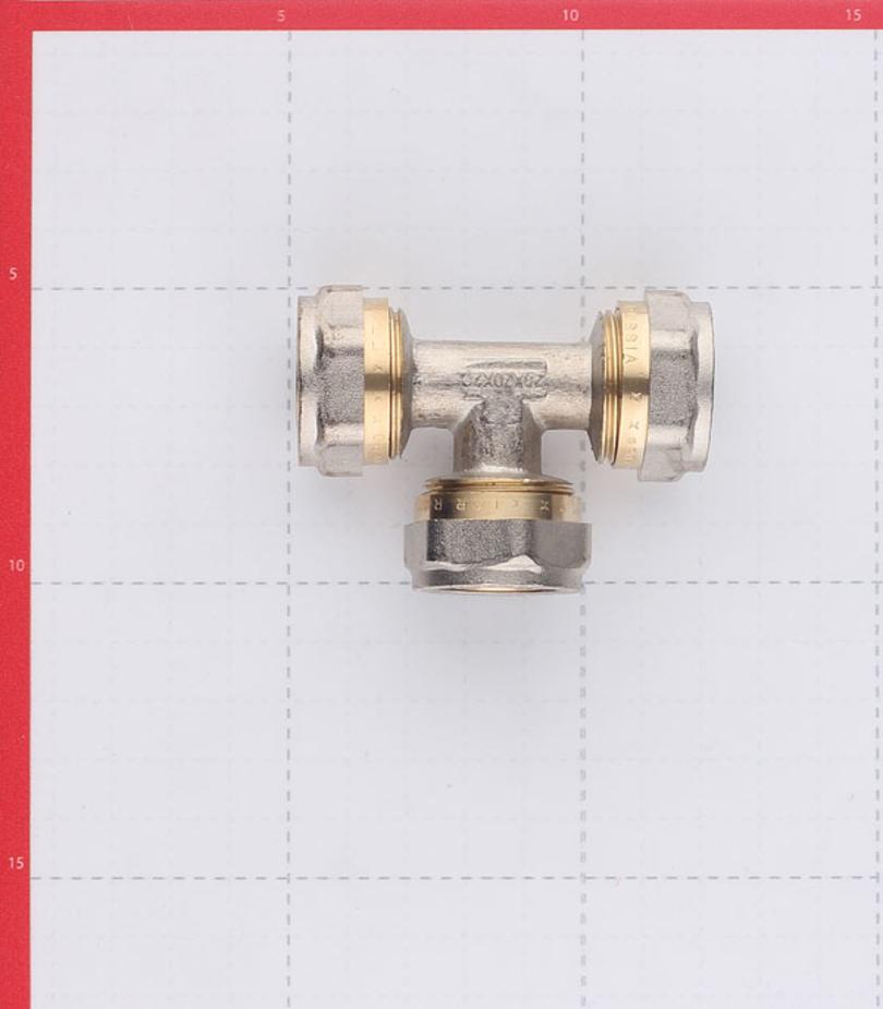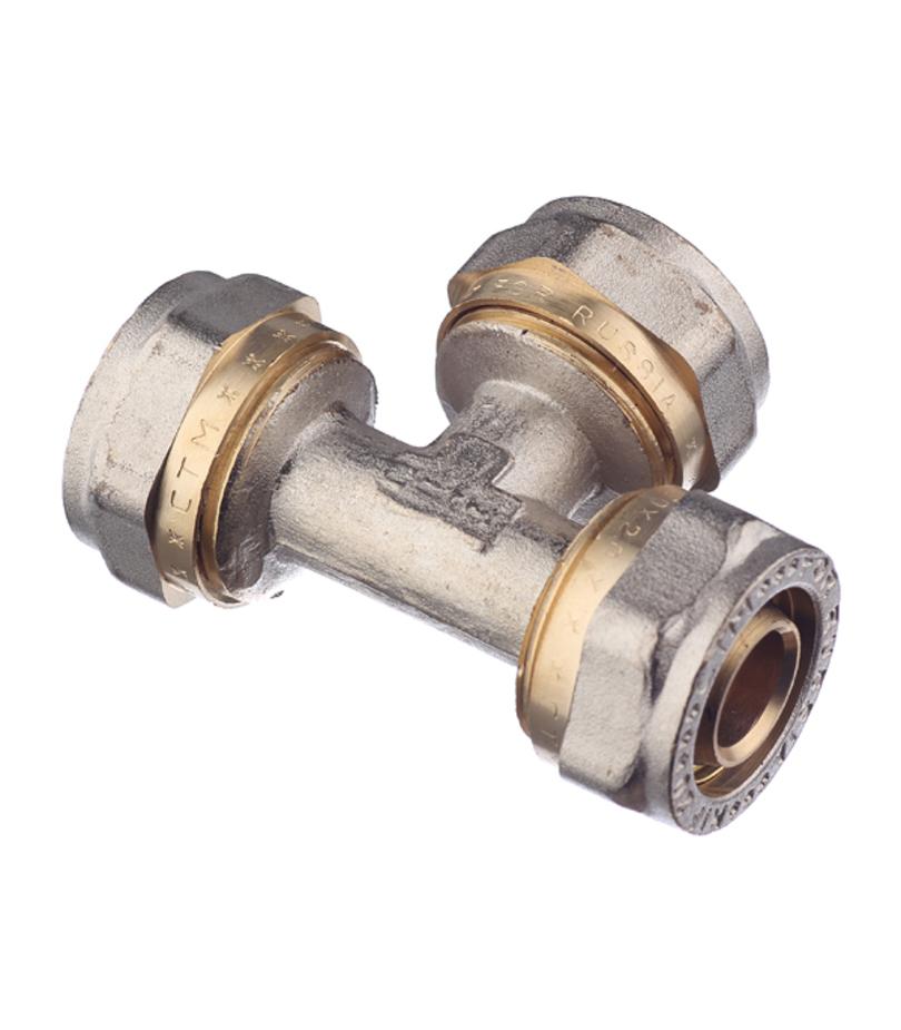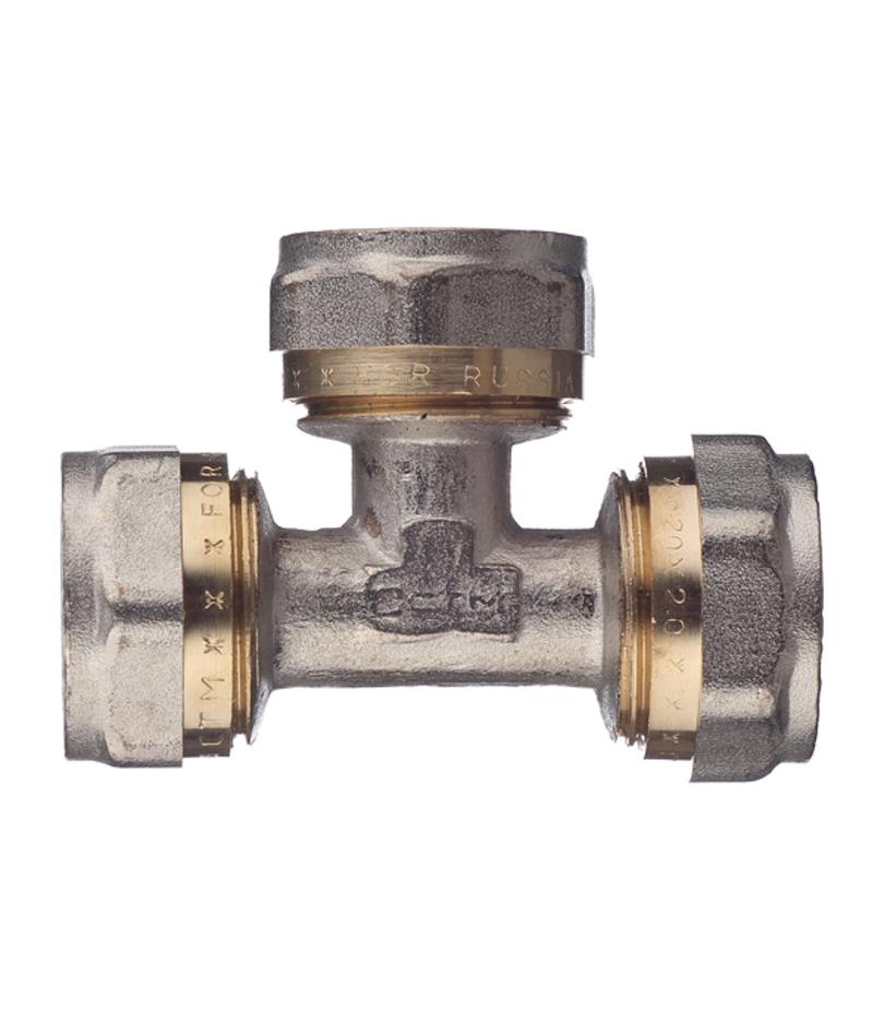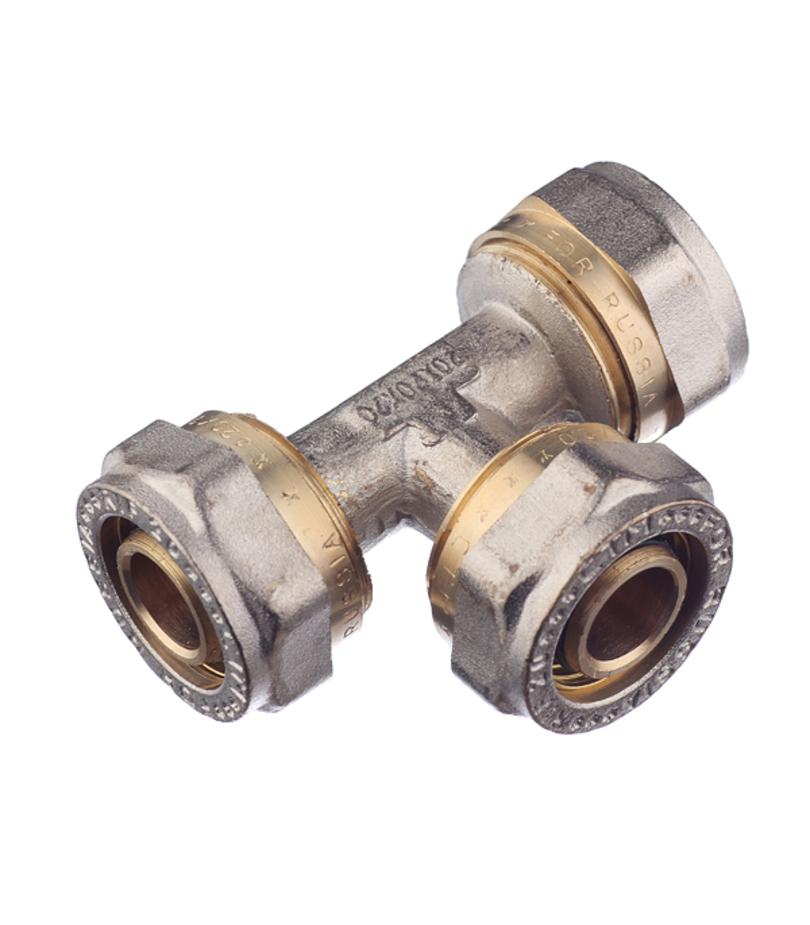 Предназначен для разветвления потока воды на два направления, а именно для соединения методом обжима трех металлопластиковых труб диаметром 20 мм. Состав латунь. Расшифровка маркировки ц – цанга (обжим). Производитель Китай.