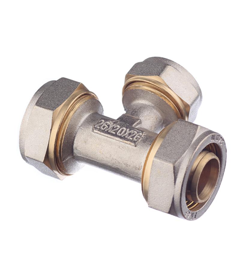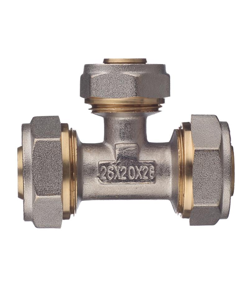 Предназначен для разветвления потока воды на два направления, а именно для соединения методом обжима двух металлопластиковых труб диаметром 26 мм с трубой диаметром 20 мм. Состав латунь. Расшифровка маркировки ц – цанга (обжим). Производитель Smart (Италия).