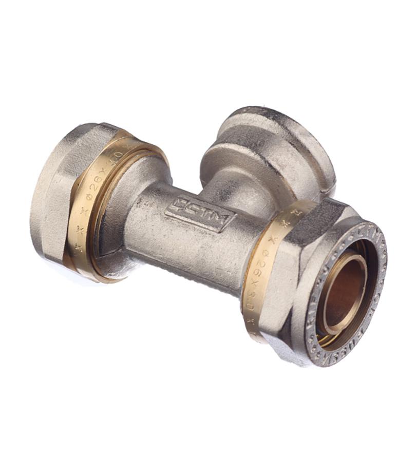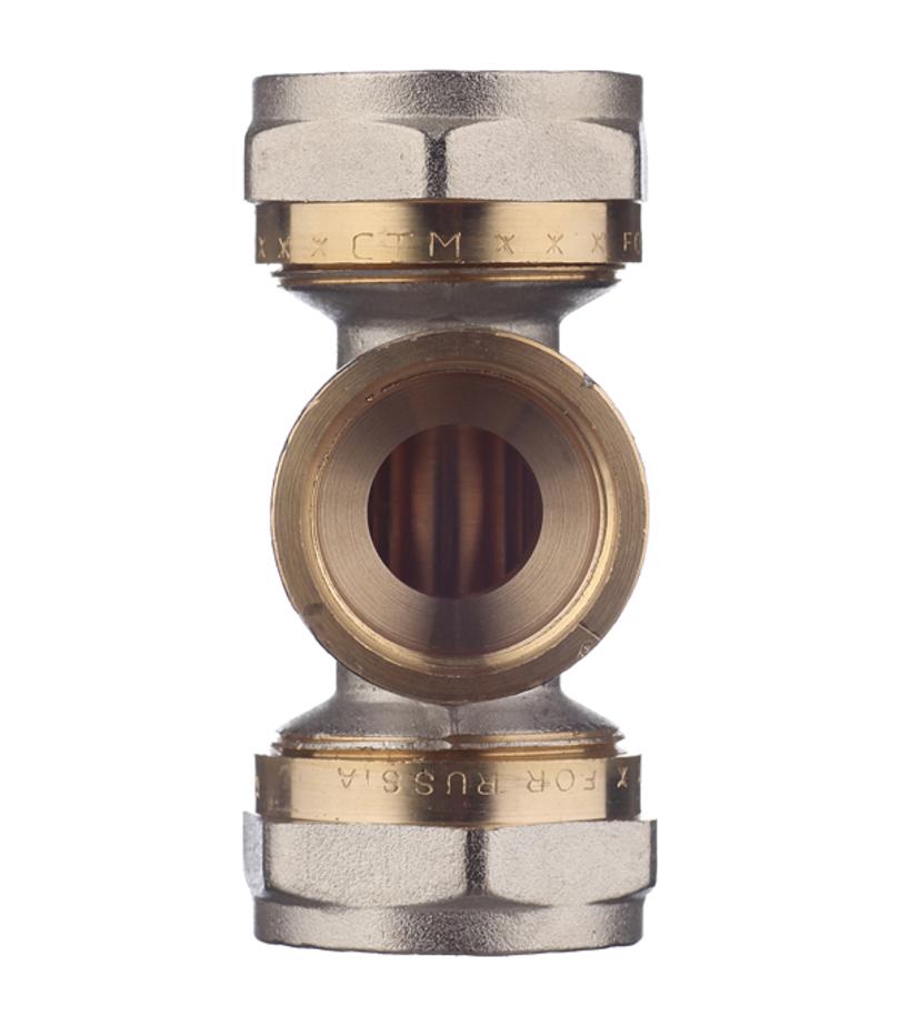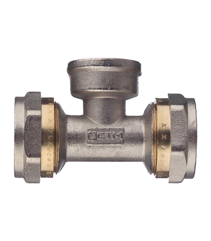 Предназначен для разветвления потока воды на два направления. Имеет два выхода для соединения металлопластиковых труб диаметром 26 мм методом обжима и один выход с внутренней резьбой 3/4″ (20 мм). Состав латунь. Расшифровка маркировки ц – цанга (обжим), г – гайка (внутренняя резьба). Производитель Smart (Италия).