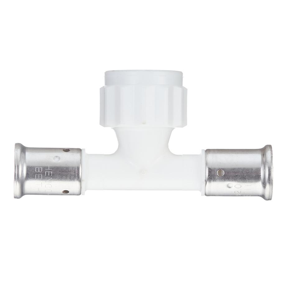 Тройник Henco (13PKW-200520) 20(пресс) х 3/4 ВР(г) х 20(пресс) белый PVDF