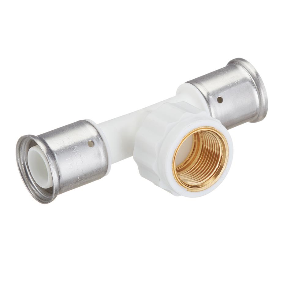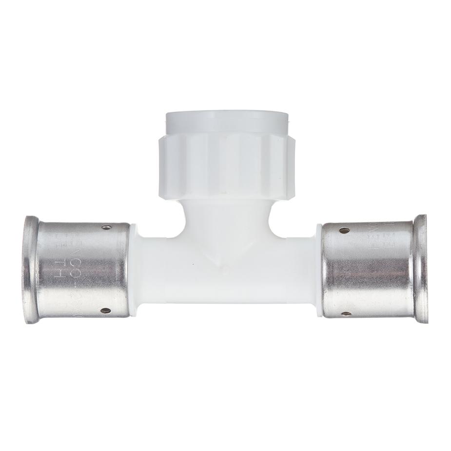 Тройник Henco (13PKW-260526) 26(пресс) х 3/4 ВР(г) х 26(пресс) белый PVDF