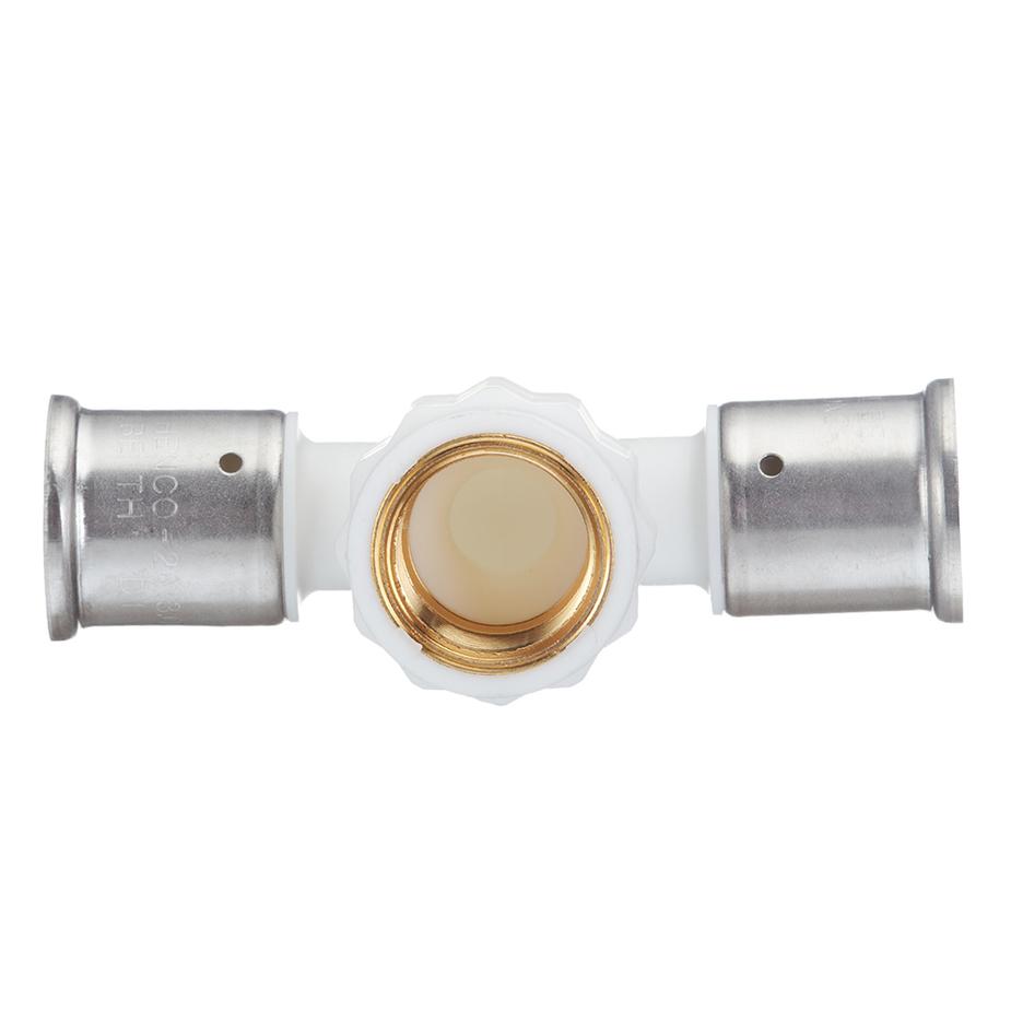 Предназначен для присоединения к металлопластиковым (металлополимерным) трубам и трубам из сшитого полиэтилена. В центре переход на внутреннюю резьбу. Материал PVDF обеспечивает высокую механическую прочность, твердость и износостойкость. Безвреден, разрешен контакт с продуктами питания, питьевой водой и использование в медицинской сфере. Фитинг выдерживает воздействие экстремальных температур от -40 °C до +150 °C, не поглощает воду, устойчив большинству наиболее агрессивных веществ и растворителей.