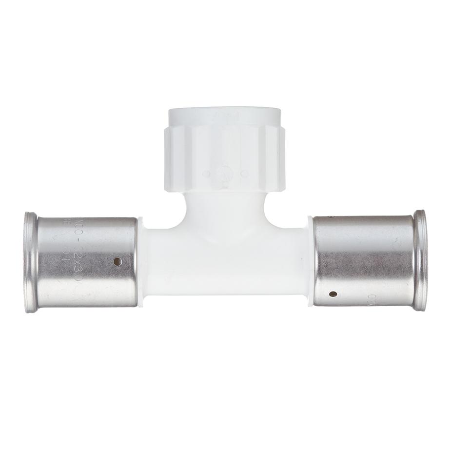 Предназначен для присоединения к металлопластиковым (металлополимерным) трубам и трубам из сшитого полиэтилена. В центре переход на внутреннюю резьбу. Материал PVDF обеспечивает высокую механическую прочность, твердость и износостойкость. Безвреден, разрешен контакт с продуктами питания, питьевой водой и использование в медицинской сфере. Фитинг выдерживает воздействие экстремальных температур от -40 °C до +150 °C, не поглощает воду, устойчив большинству наиболее агрессивных веществ и растворителей.