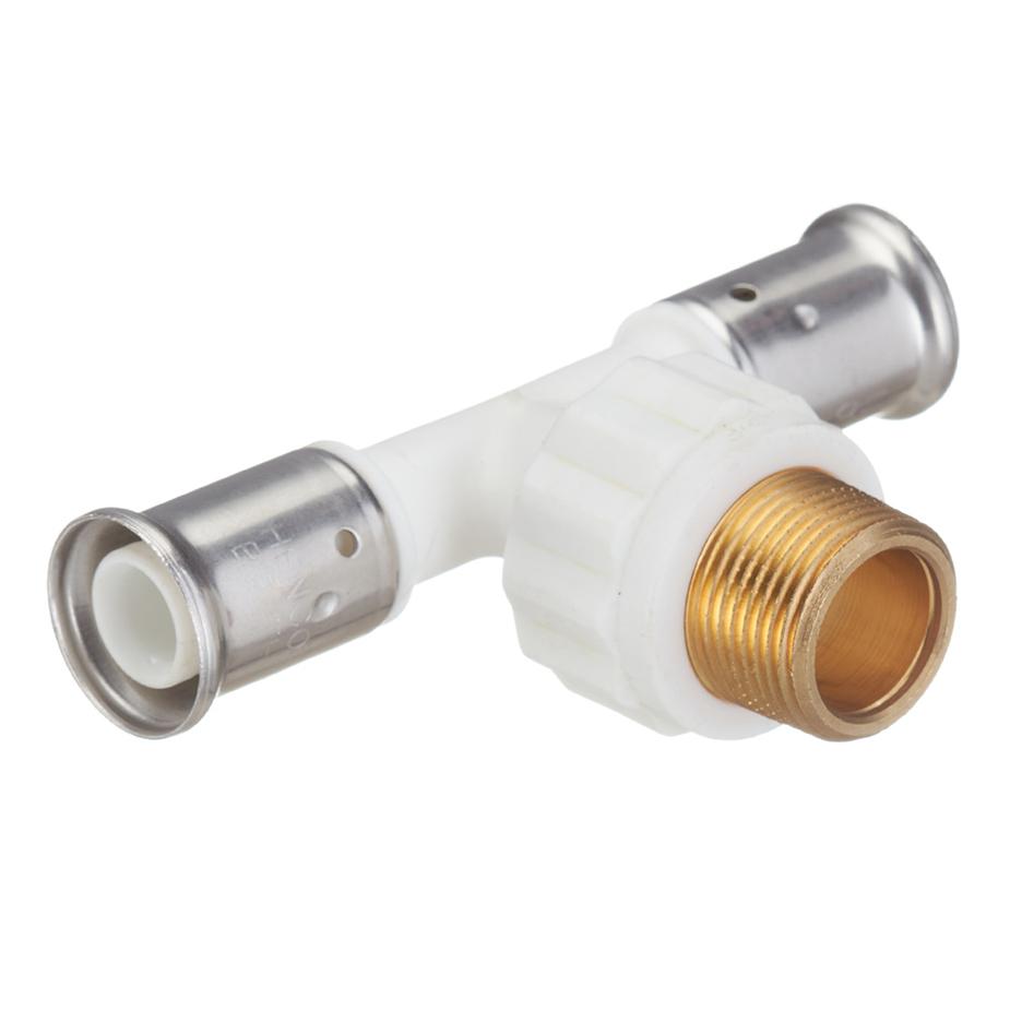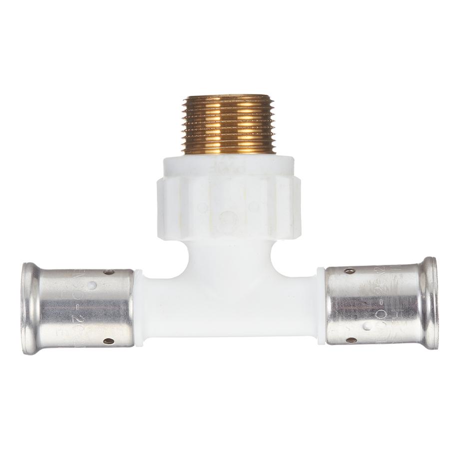 Предназначен для присоединения к металлопластиковым (металлополимерным) трубам и трубам из сшитого полиэтилена. В центре переход на наружную резьбу. Материал PVDF обеспечивает высокую механическую прочность, твердость и износостойкость. Безвреден, разрешен контакт с продуктами питания, питьевой водой и использование в медицинской сфере. Фитинг выдерживает воздействие экстремальных температур от -40 °C до +150 °C, не поглощает воду, устойчив большинству наиболее агрессивных веществ и растворителей.
