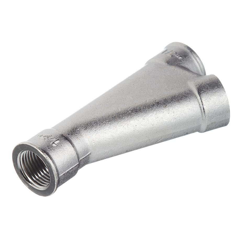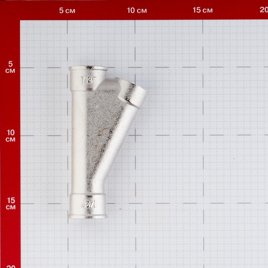 Фитинг резьбовой – тройник косой — предназначен для монтажа на трубопроводе гильзы для погружного датчика температуры VTr.551. Наклон оси бокового патрубка на 25° позволяет выполнить узел присоединения датчика максимально компактным. Тройник выполнен из латуни CW617N методом горячего прессования с последующим нанесением никелевого покрытия и рассчитан на применение в системах с рабочим давлением до 16 бар и рабочей температурой не выше 150 °C. Размер резьбы бокового патрубка – ½” проточных патрубков – ½”.
