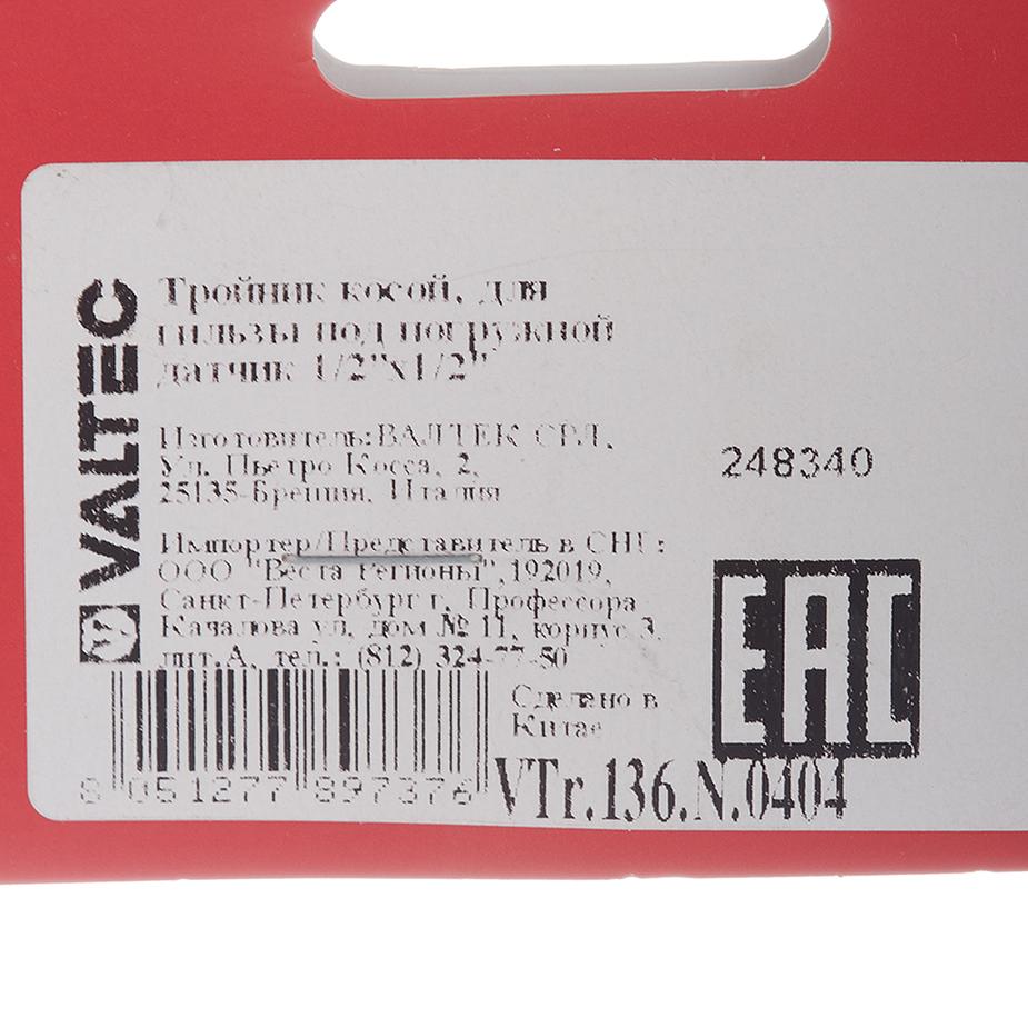 Тройник косой VALTEC для гильзы под погружной датчик 1/2 ВР(г) х 1/2 ВР(г) х 1/2 ВР(г)