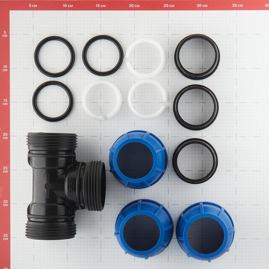 Предназначен для разветвления потока воды на два направления. Используется с трубами ПНД диаметром 50 мм. Обеспечивает отвод на 90°.