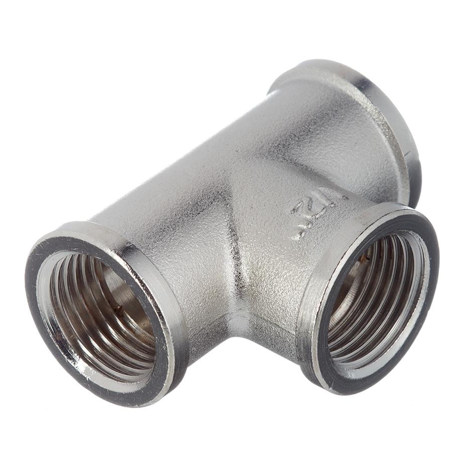 Предназначен для разветвления потока воды на два направления. Имеет с каждой стороны внутреннюю резьбу диаметром 1/2″ (15 мм). Состав латунь никелированная. Расшифровка маркировки г – гайка (внутренняя резьба). Производитель Италия.
