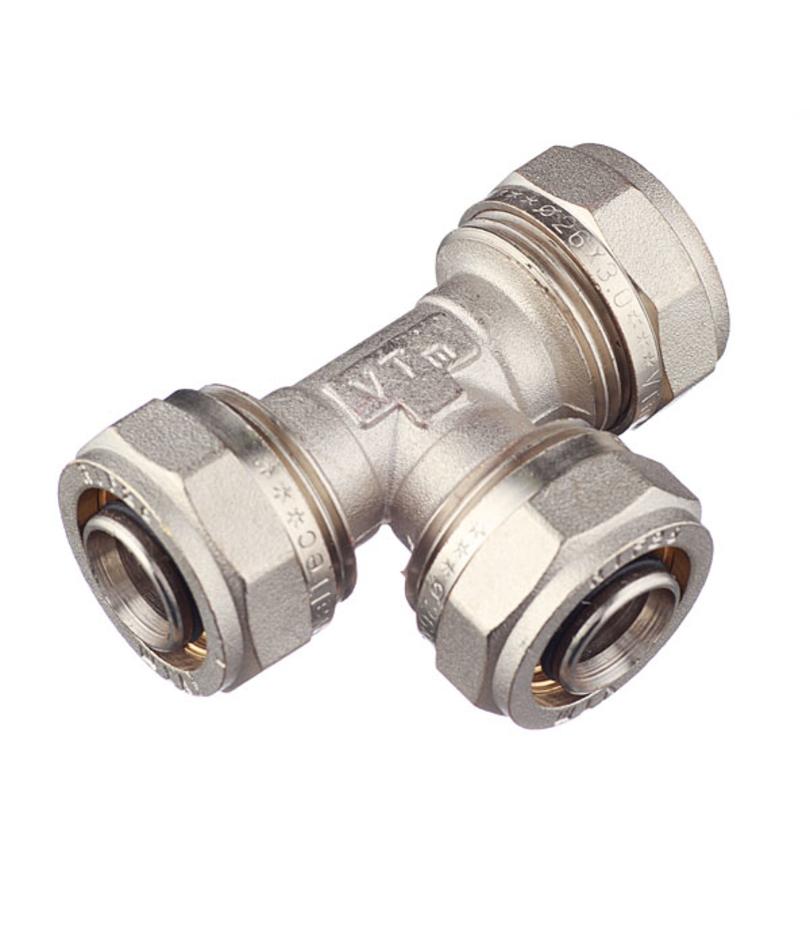 Предназначен для разветвления потока на два направления посредством присоединения к фитингу трех металлопластиковых (металлополимерных) труб диаметром 26 мм. Может использоваться в системах питьевого и хозяйственного водопровода, горячего водоснабжения, отопления, а также на технологических трубопроводах, транспортирующих жидкости, не агрессивные к материалам фитинга. Состав никелированная латунь. Расшифровка маркировки ц – цанга (обжим). Производитель Италия / Китай.