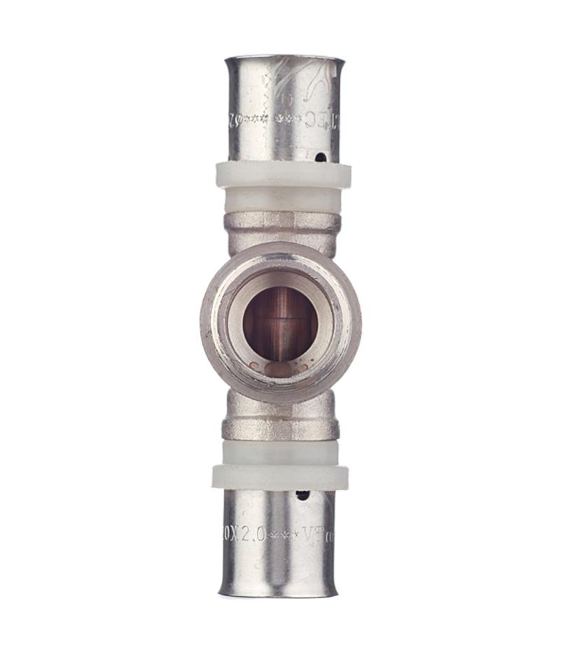 Предназначен для подсоединения к металлопластиковым (металлополимерным) трубам или трубам из сшитого полиэтилена элемента системы с внутренней резьбой. Резьба фитинга – трубная по ГОСТ 6357. Опрессовка производится пресс-инструментом с насадками типа «ТН». Состав никелерованная латунь, пресс-гильза из нержавеющей стали AISI 304,. уплотнительные кольца штуцеров – из EPDM. Производитель Италия / Китай.