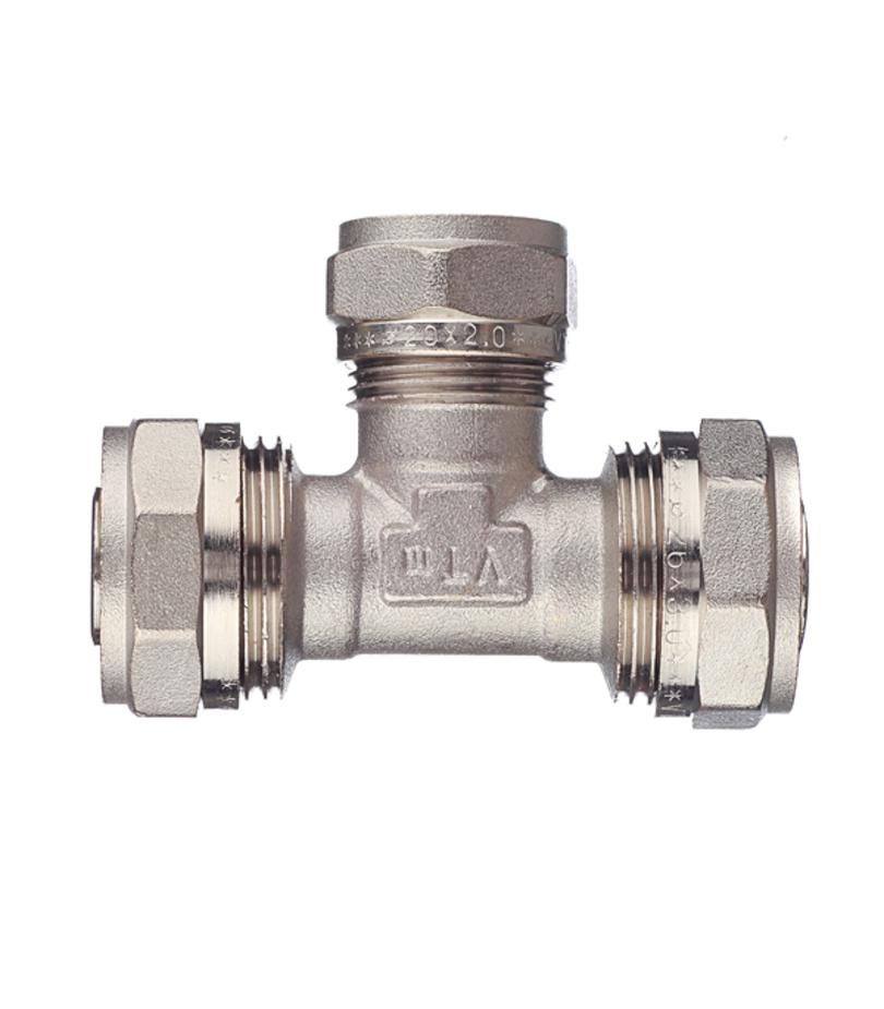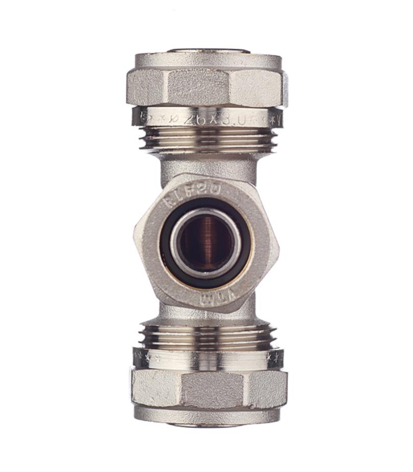 Предназначен для разветвления потока на два направления посредством присоединения к фитингу трех металлопластиковых (металлополимерных) труб. Диаметры труб: 26 мм., 20 мм., 26 мм. Может использоваться в системах питьевого и хозяйственного водопровода, горячего водоснабжения, отопления, а также на технологических трубопроводах, транспортирующих жидкости, не агрессивные к материалам фитинга. Состав никелированная латунь. Расшифровка маркировки ц – цанга (обжим). Производитель Италия / Китай.