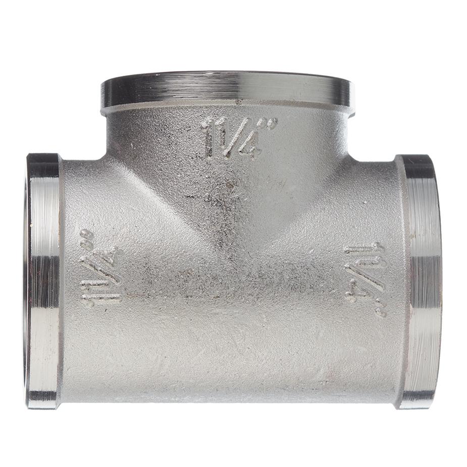 Предназначен для разветвления потока воды на два направления. Имеет с каждой стороны внутреннюю резьбу диаметром 1 1/4″ (32 мм). Резьба – внутренняя, цилиндрическая трубная по ГОСТу 6357 (ISO 228, EN 10226), совместимая также с наружной конической трубной резьбой по ГОСТу 6211 (ISO R7). Состав никелированная латунь. Производитель Италия/Китай.