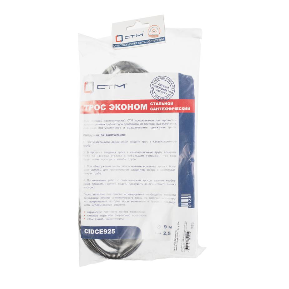 Трос сантехнический для прочистки канализации 9 мм 2,5 м