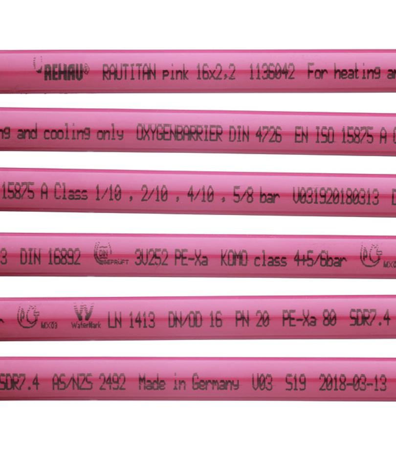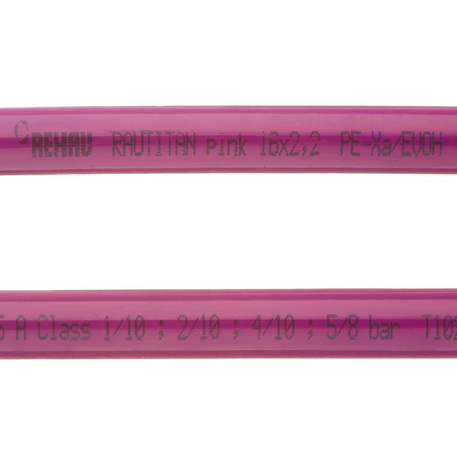 Применяться в качестве подающей магистрали с температурой 95°C с максимальным рабочим давлением 8 бар. Кратковременно (в аварийном режиме) допускается ее эксплуатация при температуре 110°C.с RAUPINK фирмы REHAU может применяться только в системах отопления. Трубы RAUPINK не предназначены для использования в водопроводной разводке. Производитель Германия.
