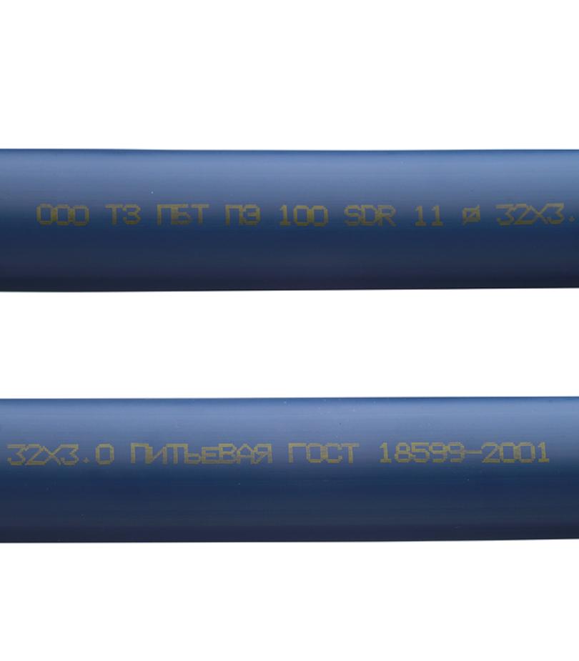 Предназначена для создания трубопроводов транспортирующих воду, в том числе для хозяйственно-питьевого водоснабжения при температуре от 0 до + 40 °C. Труба синяя производится из первичного высококачественного сырья, соответствующего ГОСТ-18599-2001, из полиэтилена низкого давления, и соответствует всем санитарным, эпидемиологическим и гигиеническим требованиям. Синий цвет является гарантией качества производителя продукции и защитой от подделок. Расшифровка маркировки ПЭ-100 – марка полиэтилена.