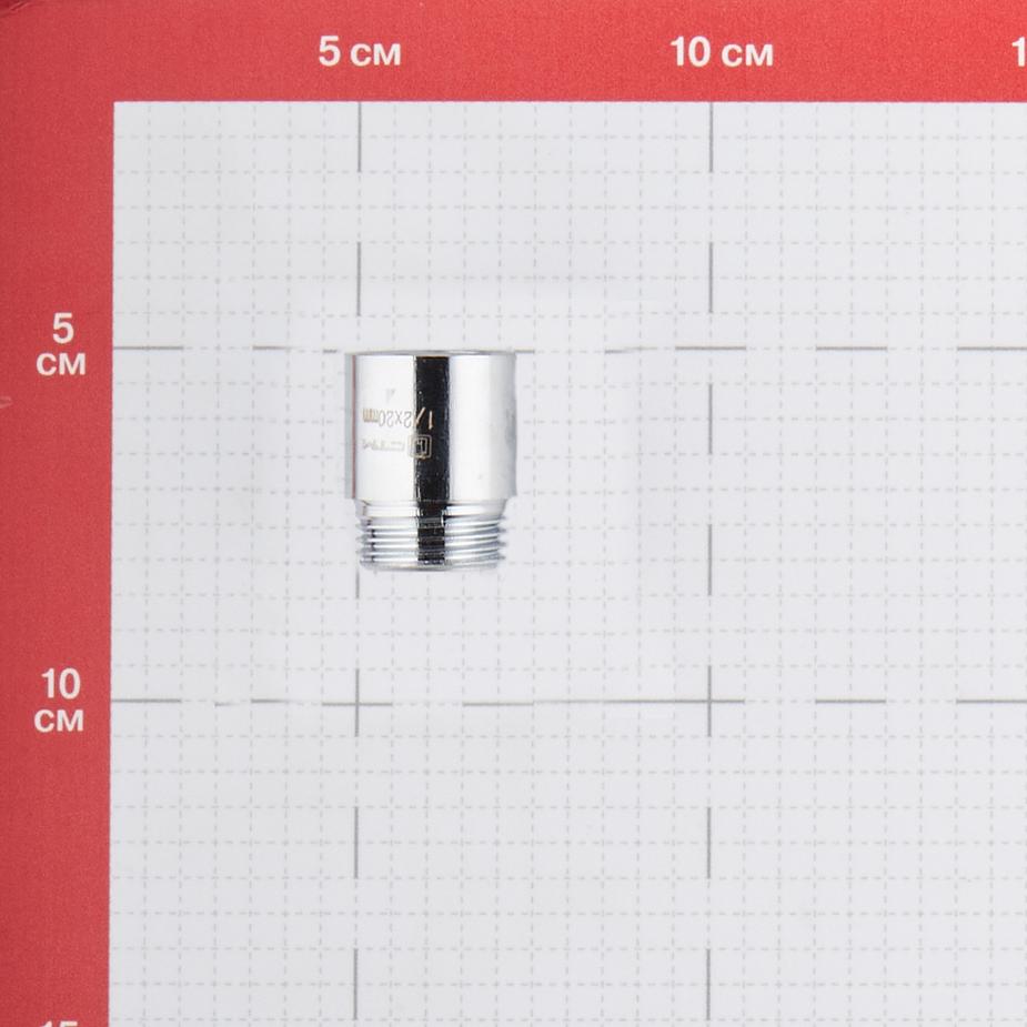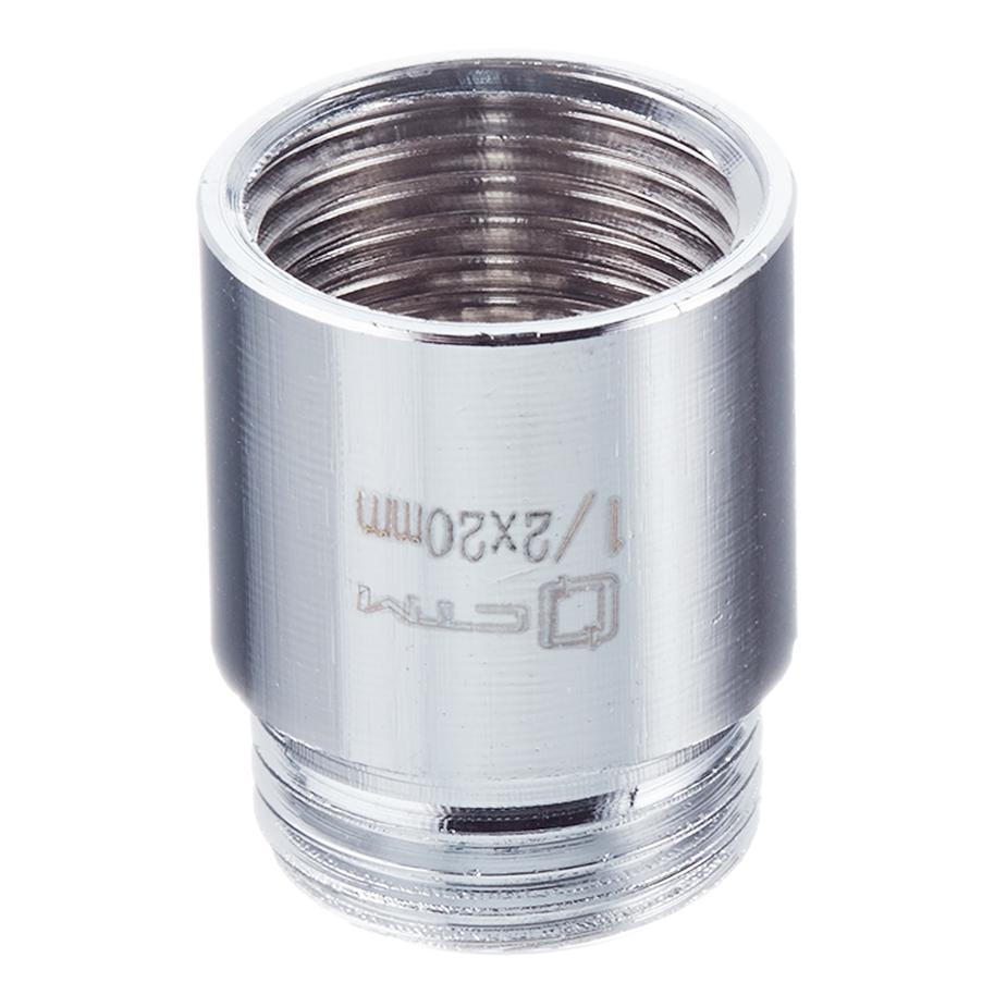 Предназначен для удлинения резьбового соединения на 20 мм. С одной стороны имеет внутреннюю резьбу 1/2″ (16 мм), с другой стороны наружную 1/2″ (16 мм). Состав латунь никелированная. Производитель Китай.
