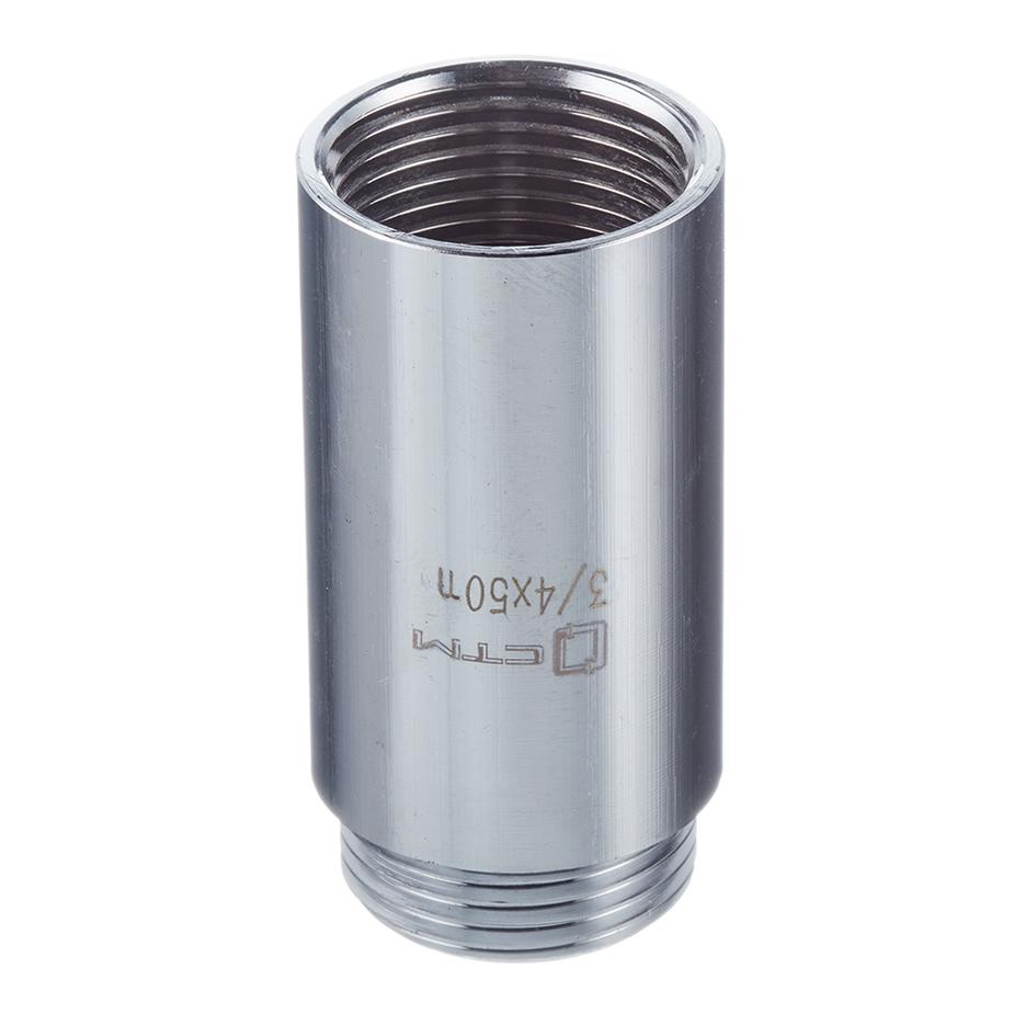 Предназначен для удлинения резьбового соединения на 50 мм. С одной стороны имеет внутреннюю резьбу 3/4″ (20 мм), с другой стороны наружную 3/4″ (20 мм). Состав хромированная латунь никелированная. Расшифровка маркировки НР – наружная резьба. Производитель Китай.