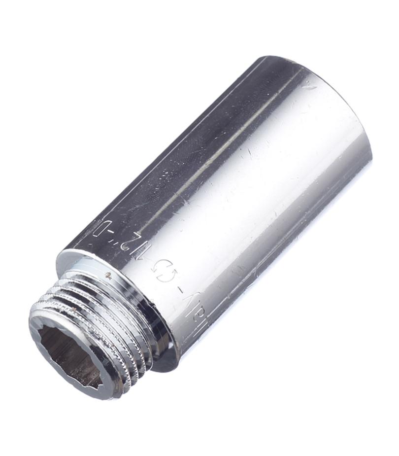 Предназначен для удлинения резьбового соединения на 50 мм. С одной стороны имеет внутреннюю резьбу 1/2″ (15 мм), с другой стороны наружную 1/2″ (15 мм). Состав латунь хромированная. Производитель Италия.