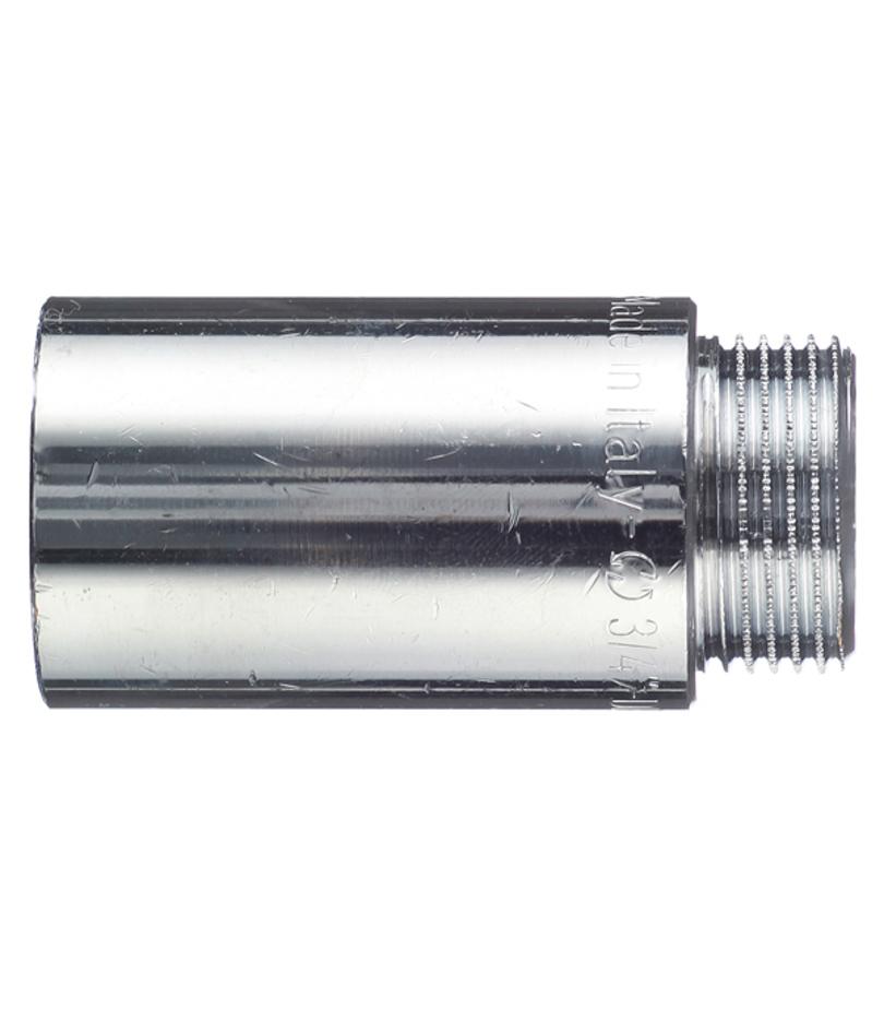 Предназначен для удлинения резьбового соединения на 50 мм. С одной стороны имеет внутреннюю резьбу 3/4″ (20 мм), с другой стороны наружную 3/4″ (20 мм). Состав латунь хромированная. Расшифровка маркировки НР – наружная резьба. Производитель Италия.