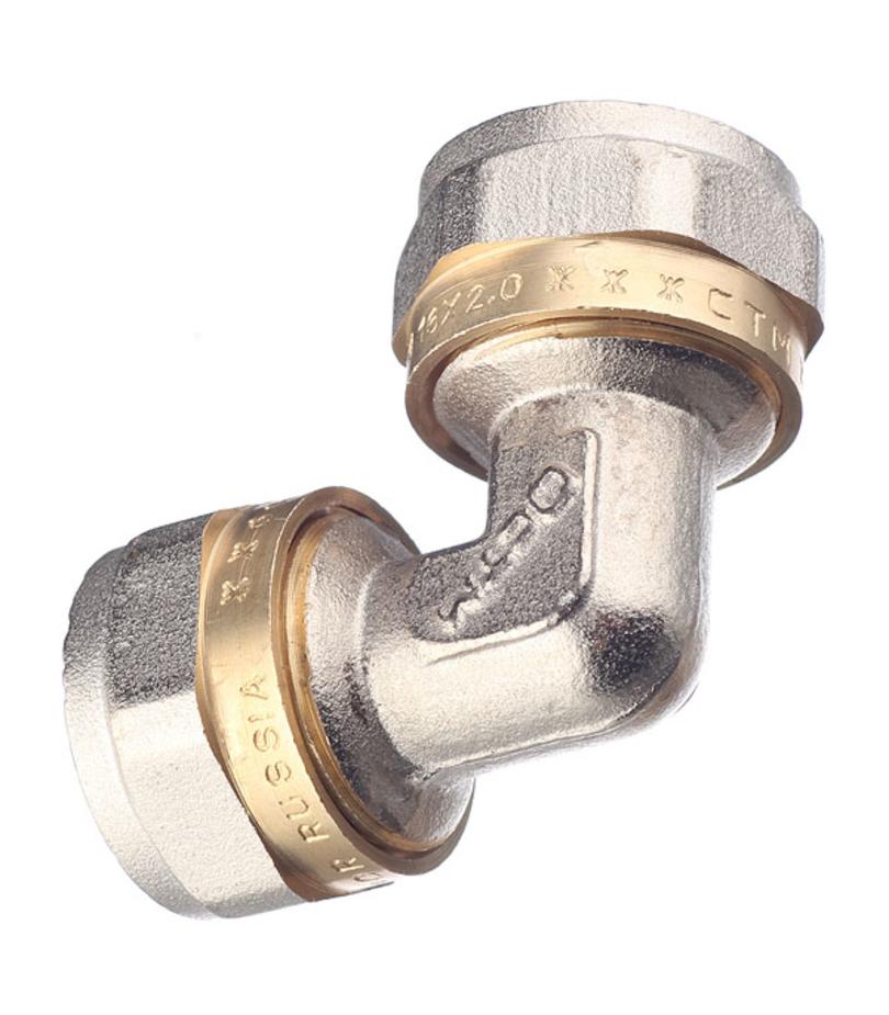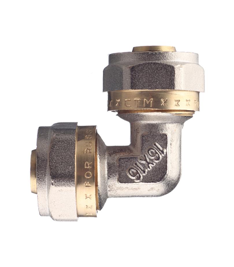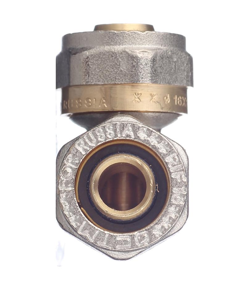 Предназначен для изменения направления металлопластиковой трубы диаметром 16 мм на 90º. Состав латунь. Расшифровка маркировки ц – цанга (обжим). Производитель Китай.