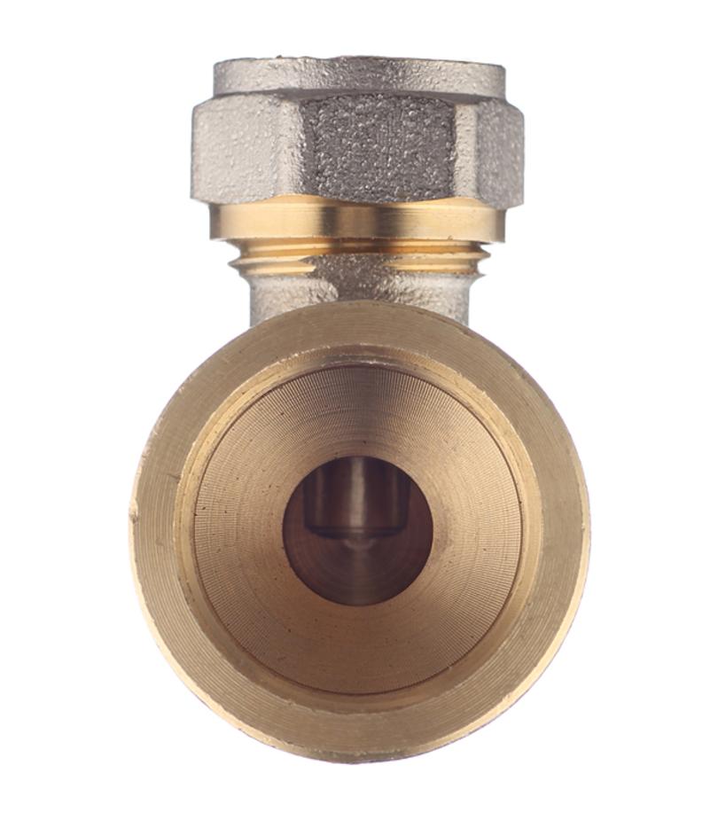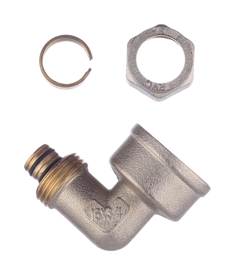 Предназначен для изменения направления металлопластиковой трубы диаметром 16 мм на 90º с переходом на резьбовое соединение 3/4″ (20 мм) с внутренней резьбой. Состав латунь. Расшифровка маркировки ц – цанга (обжим), г – гайка (внутренняя резьба). Производитель Китай.