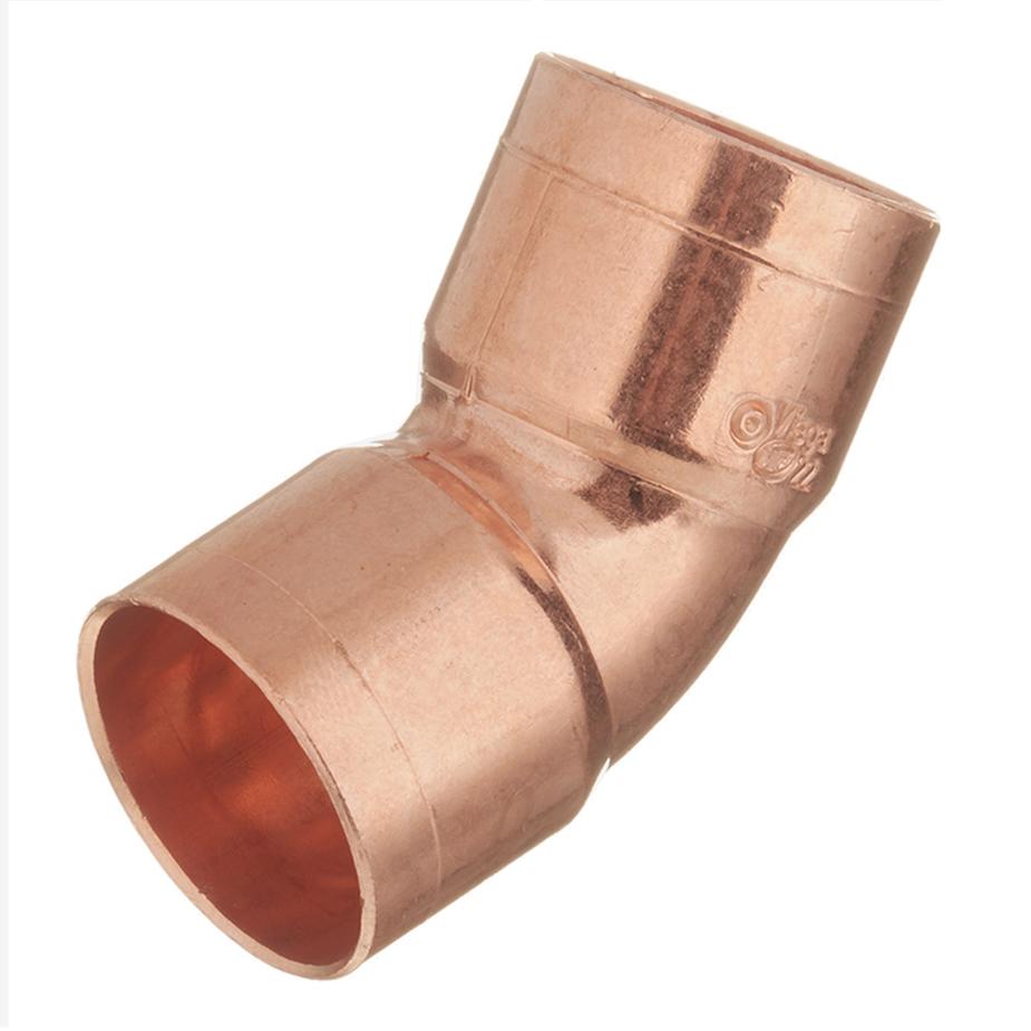 Предназначен для изменения направления трубопровода, применяется для соединения медных труб одного диаметра. Угол двухраструбный 45 градусов пайка VIEGA 22 – незаменимый фитинг для изменения направления трубопровода, применяется для соединения медных труб одного диаметра в системах холодного и горячего водоснабжения, напольного и центрального отопления, для распределения воздуха и сантехнического оборудования, при прокладке технологических трубопроводов.