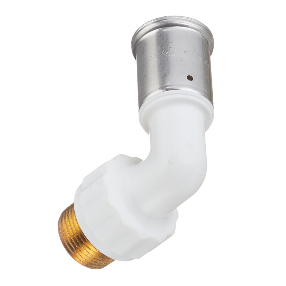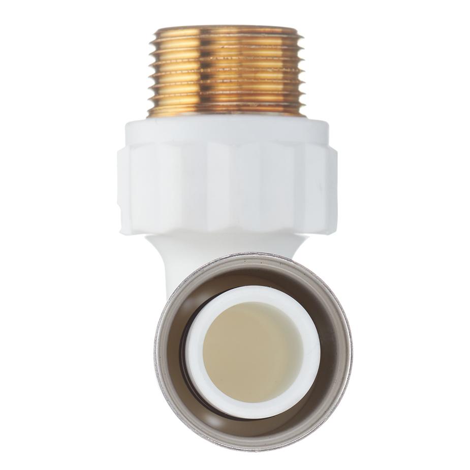 Предназначен для присоединения к металлопластиковым (металлополимерным) трубам и трубам из сшитого полиэтилена. Имеет наружную резьбу. Материал PVDF обеспечивает высокую механическую прочность, твердость и износостойкость. Безвреден, разрешен контакт с продуктами питания, питьевой водой и использование в медицинской сфере. Фитинг выдерживает воздействие экстремальных температур от -40 °C до +150 °C, не поглощает воду, устойчив большинству наиболее агрессивных веществ и растворителей.