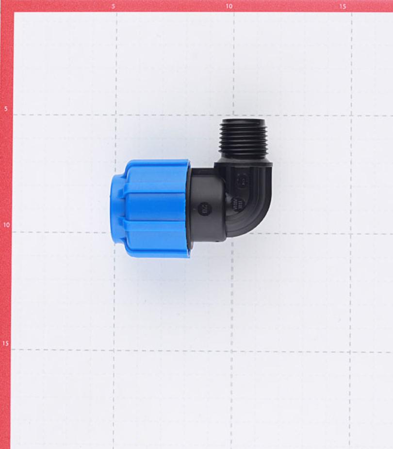 Предназначен для изменения направления полиэтиленовой трубы диаметром 20 мм на 90° с переходом на резьбовое соединение 1/2″ (16 мм) с внутренней резьбой.