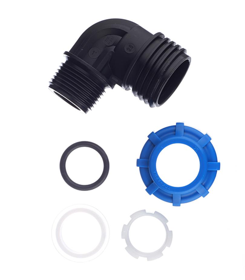 Предназначен для изменения направления трубы ПНД диаметром 25 мм на 90° с переходом на резьбовое соединение 1″ (25 мм) с внутренней резьбой.