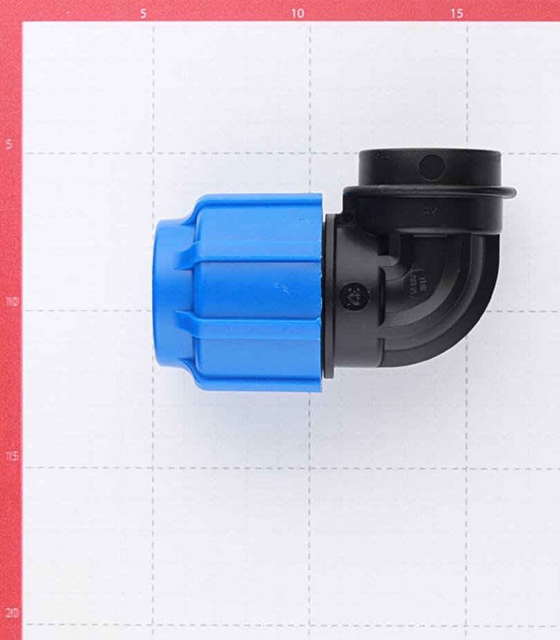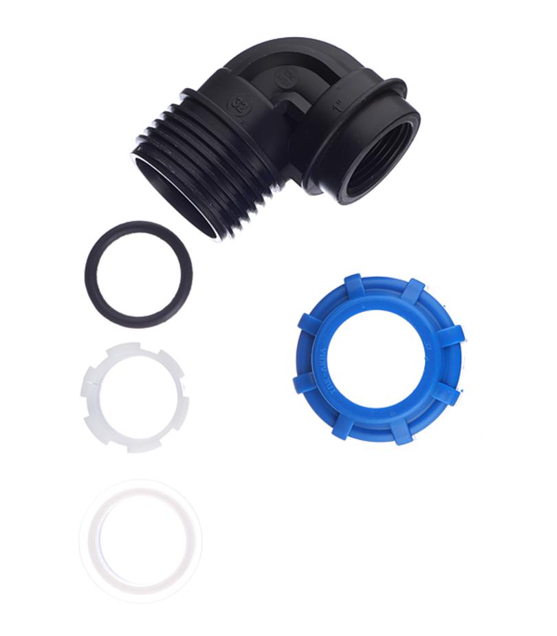 Предназначен для изменения направления полиэтиленовой трубы диаметром 32 мм на 90° с переходом на резьбовое соединение 1″ (25 мм) с наружной резьбой.