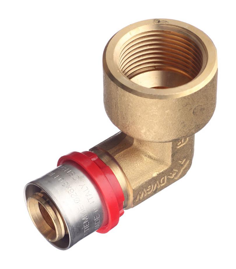 Предназначен для изменения направления металлопластиковой трубы диаметром 26 мм на 90º с переходом на резьбовое соединение 1″ (25 мм) с внутренней резьбой. Состав латунь, пресс-гильза из нержавеющей стали. Расшифровка маркировки г – гайка (внутренняя резьба). Производитель Италия.